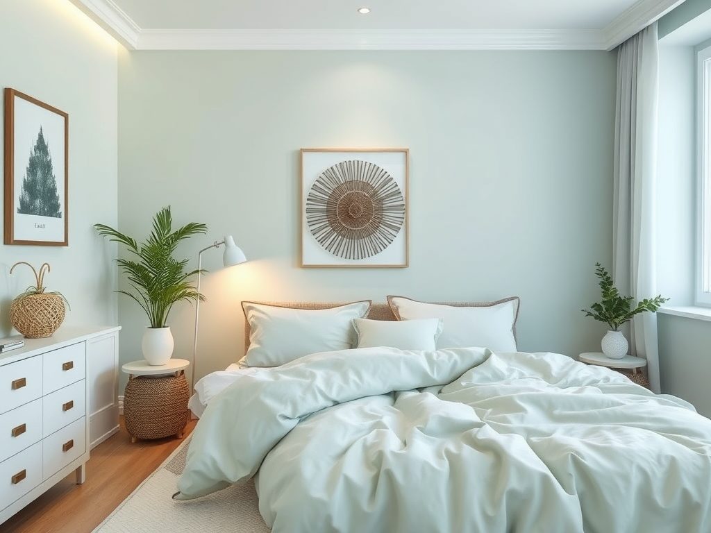 Stosując te kolory, ogranicz je do małych akcentów dekoracyjnych i zacznij dobierać neutralne tonacje, takie jak błękity, beże czy zielenie, które stworzą spokojną atmosferę w przestrzeni sypialni.